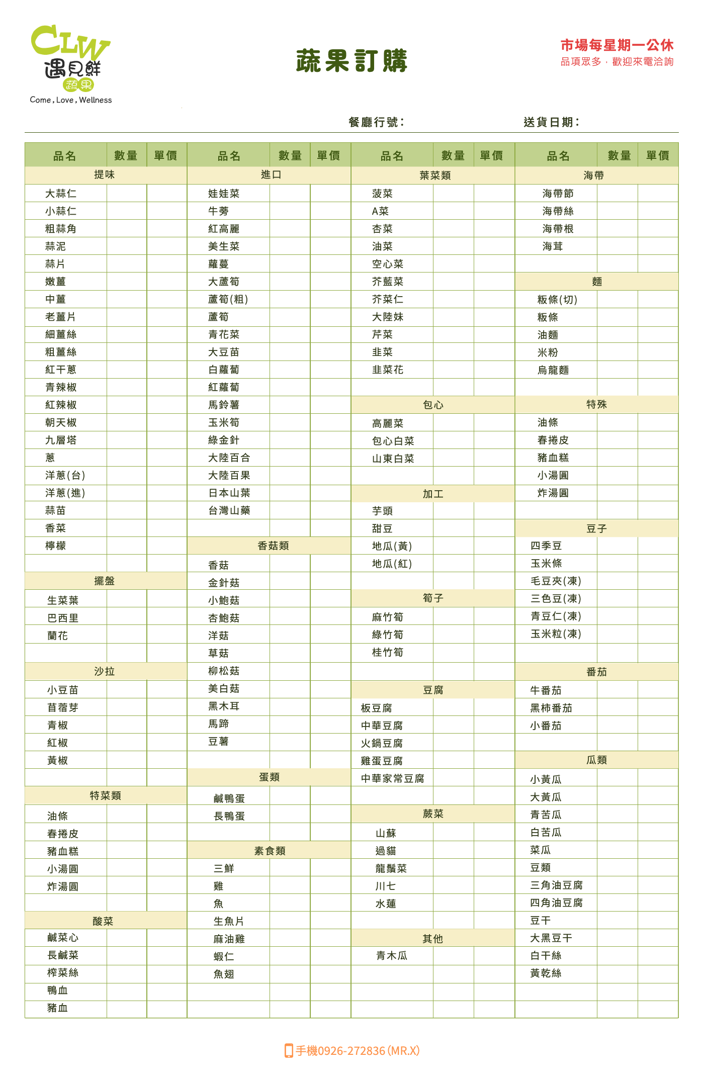 | 特菜類 | 鹹鴨蛋 | 大黃瓜 | |||||||||